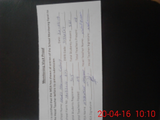 | Monitoring Date: 20-04-2016 | Start Time: 20-04-2016 09:26 AM | End Time: 20-04-2016 10:11 AM | Name of MEA: Mu**** Am**** | |