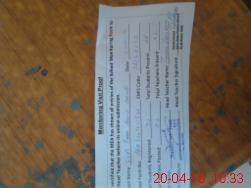 | Attendance Register | Head Teacher | MEA with School | Visit Proof |