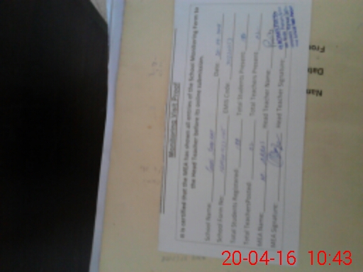 | Attendance Register | Head Teacher | MEA with School | Visit Proof |