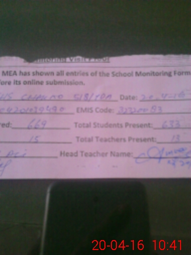| Attendance Register | Head Teacher | MEA with School | Visit Proof |
