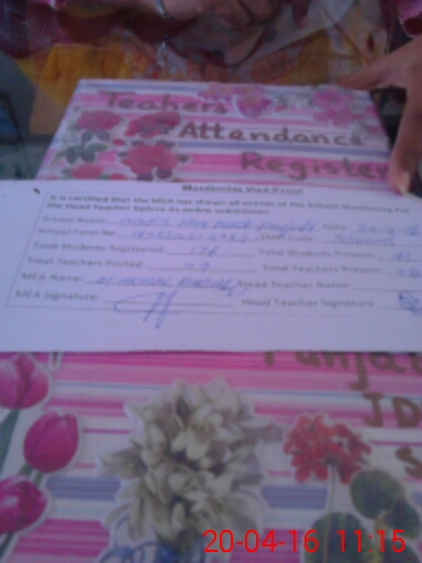 | Attendance Register | Head Teacher | MEA with School | Visit Proof |
