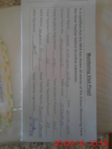 | Certified that this School was Inspected by the Undersigned MEA/DMO Today and the Information Stated Above is as Per Record. | |||||