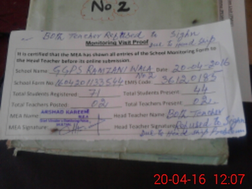 | EMIS Code: 36120185 | Name of School: GGPS RAMZANI WALA NO.2 | |||