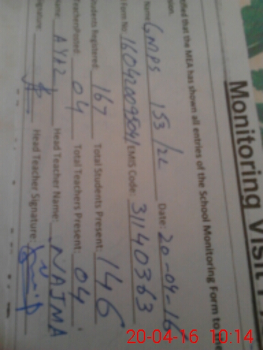 | Attendance Register | Head Teacher | MEA with School | Visit Proof |