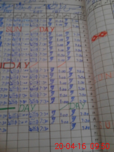 | CNIC | Full Name | Designation | R/C | Absence During Last Calender Month |