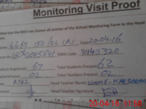 | EMIS Code: 31140320 | Name of School: GGPS CHAK NO 150/2-L A | |||