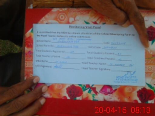 | Attendance Register | Head Teacher | MEA with School | Visit Proof |