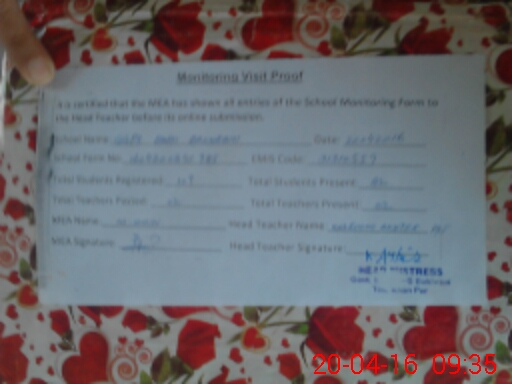 | Attendance Register | Head Teacher | MEA with School | Visit Proof |