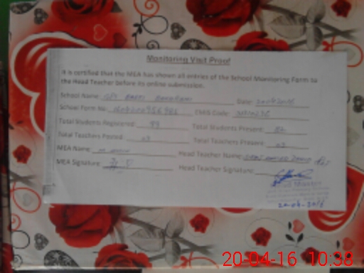 | Certified that this School was Inspected by the Undersigned MEA/DMO Today and the Information Stated Above is as Per Record. | |||||