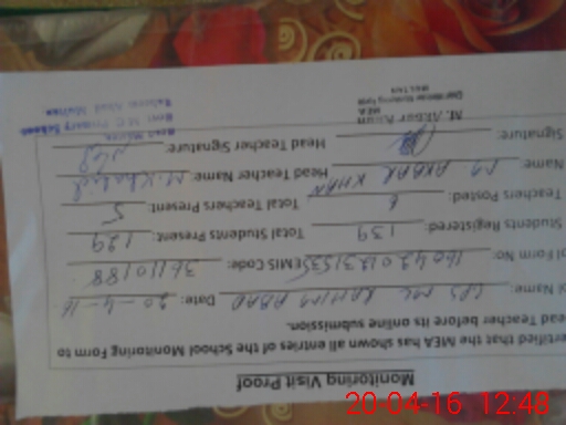| Certified that this School was Inspected by the Undersigned MEA/DMO Today and the Information Stated Above is as Per Record. | |||||