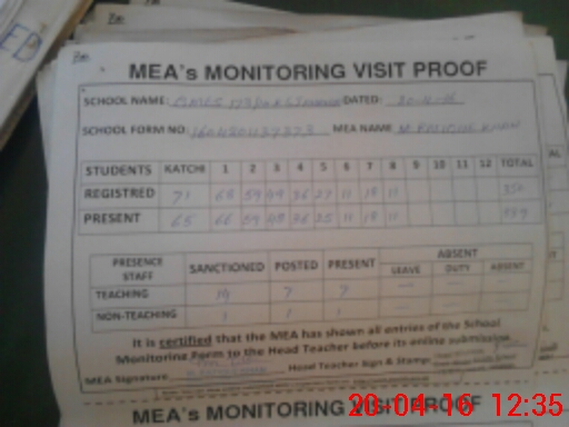 | Attendance Register | Head Teacher | MEA with School | Visit Proof |