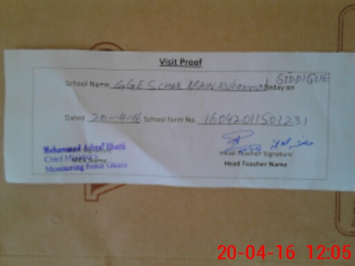 | Attendance Register | Head Teacher | MEA with School | Visit Proof |