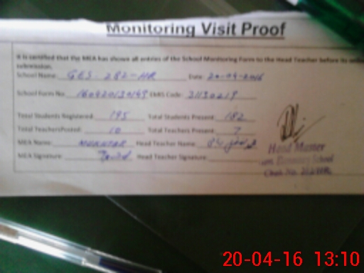 | Attendance Register | Head Teacher | MEA with School | Visit Proof |