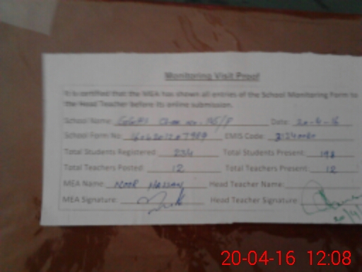 | Certified that this School was Inspected by the Undersigned MEA/DMO Today and the Information Stated Above is as Per Record. | |||||