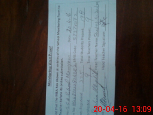 | Attendance Register | Head Teacher | MEA with School | Visit Proof |