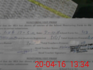 | Attendance Register | Head Teacher | MEA with School | Visit Proof |