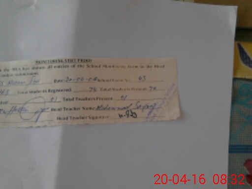 | Attendance Register | Head Teacher | MEA with School | Visit Proof |