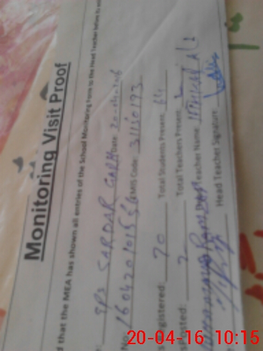 | Attendance Register | Head Teacher | MEA with School | Visit Proof |