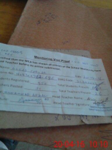 | Attendance Register | Head Teacher | MEA with School | Visit Proof |