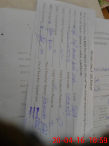 | Monitoring Date: 20-04-2016 | Start Time: 20-04-2016 10:43 AM | End Time: 20-04-2016 10:59 AM | Name of MEA: Gh**** Mu**** | |