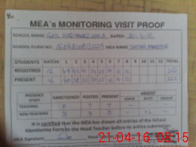 | Certified that this School was Inspected by the Undersigned MEA/DMO Today and the Information Stated Above is as Per Record. | |||||