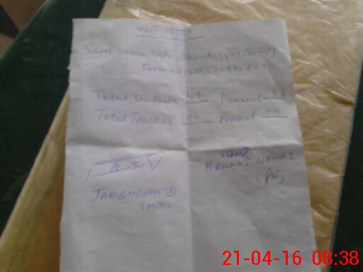 | Attendance Register | Head Teacher | MEA with School | Visit Proof |