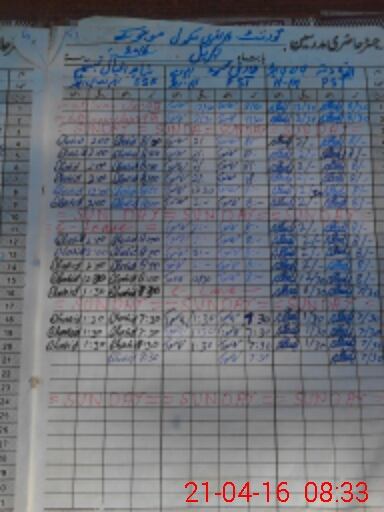 | CNIC | Full Name | Designation | R/C | Absence During Last Calender Month |