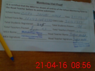 | Attendance Register | Head Teacher | MEA with School | Visit Proof |