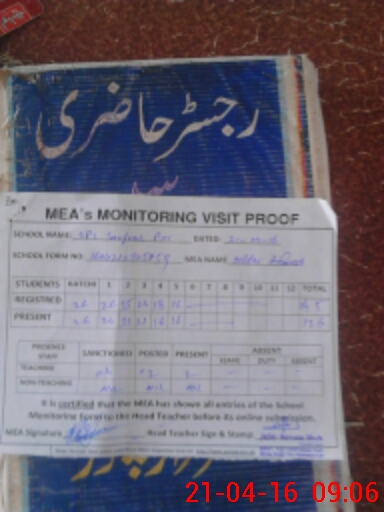 | Attendance Register | Head Teacher | MEA with School | Visit Proof |