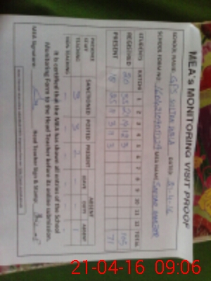 | Monitoring Date: 21-04-2016 | Start Time: 21-04-2016 08:33 AM | End Time: 21-04-2016 09:07 AM | Name of MEA: Z.**** SA**** MA**** | |