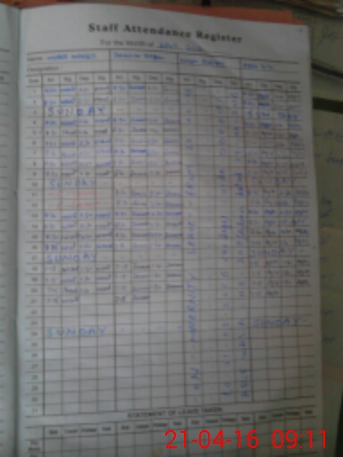 | CNIC | Full Name | Designation | R/C | Absence During Last Calender Month |
