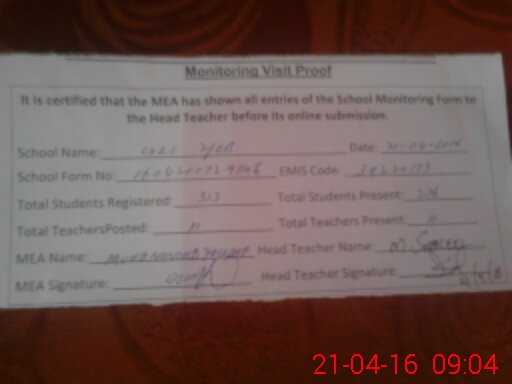 | Certified that this School was Inspected by the Undersigned MEA/DMO Today and the Information Stated Above is as Per Record. | |||||