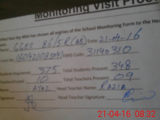 | Attendance Register | Head Teacher | MEA with School | Visit Proof |