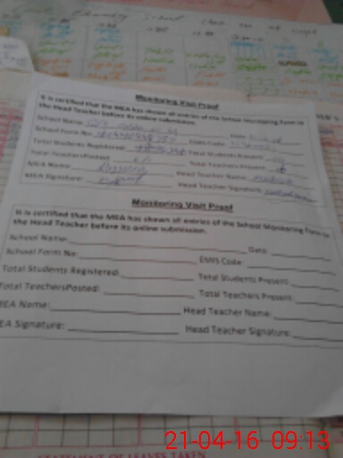 | Attendance Register | Head Teacher | MEA with School | Visit Proof |
