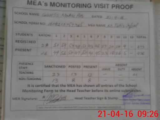 | Certified that this School was Inspected by the Undersigned MEA/DMO Today and the Information Stated Above is as Per Record. | |||||