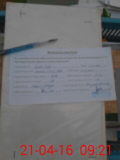 | Monitoring Date: 21-04-2016 | Start Time: 21-04-2016 08:23 AM | End Time: 21-04-2016 09:30 AM | Name of MEA: Ab**** Gh**** | |