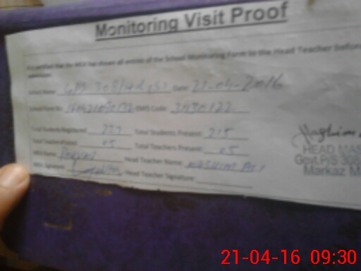 | Attendance Register | Head Teacher | MEA with School | Visit Proof |