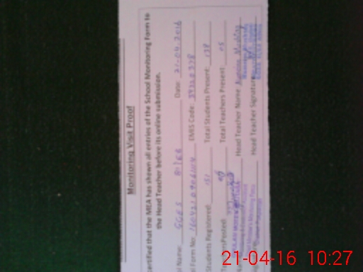 | Certified that this School was Inspected by the Undersigned MEA/DMO Today and the Information Stated Above is as Per Record. | |||||