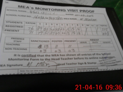 | Attendance Register | Head Teacher | MEA with School | Visit Proof |