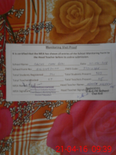 | Attendance Register | Head Teacher | MEA with School | Visit Proof |