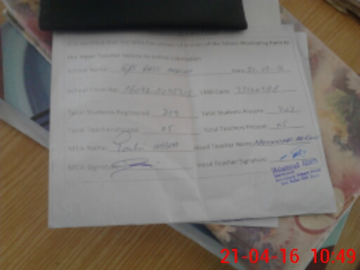 | Attendance Register | Head Teacher | MEA with School | Visit Proof |
