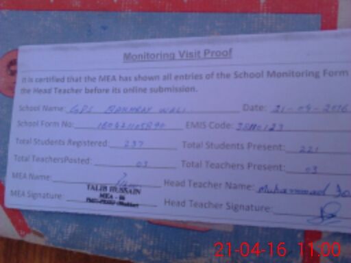 | EMIS Code: 38110123 | Name of School: GPS BAKHRAY WALI | |||