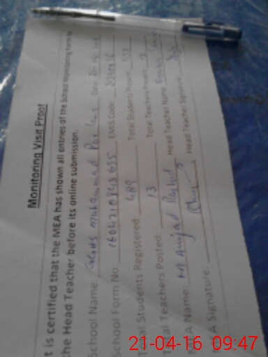 | Attendance Register | Head Teacher | MEA with School | Visit Proof |