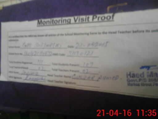 | Certified that this School was Inspected by the Undersigned MEA/DMO Today and the Information Stated Above is as Per Record. | |||||