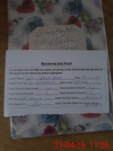 | Attendance Register | Head Teacher | MEA with School | Visit Proof |