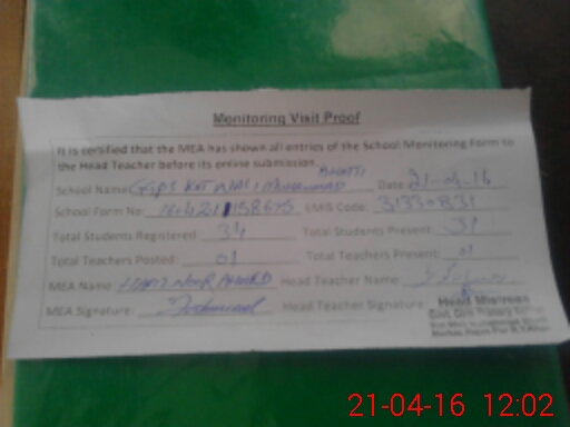 | EMIS Code: 31330831 | Name of School: GGPS KOT WALI MUHAMMAD BHATTI | |||