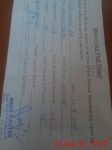 | Certified that this School was Inspected by the Undersigned MEA/DMO Today and the Information Stated Above is as Per Record. | |||||