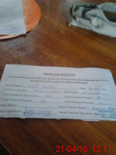 | Attendance Register | Head Teacher | MEA with School | Visit Proof |
