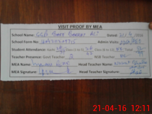 | Attendance Register | Head Teacher | MEA with School | Visit Proof |