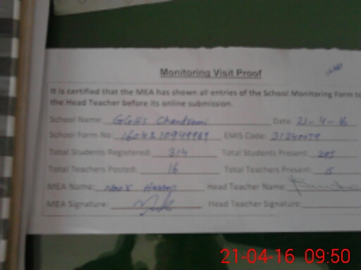| Attendance Register | Head Teacher | MEA with School | Visit Proof |